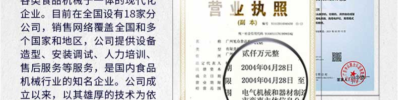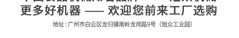 廣州旭眾食品機械有限公司是一家集科研開發(fā),生產設計,營銷服務為一體的現(xiàn)代化生產企業(yè)。現(xiàn)代化生產車間,精湛制造技術,所產機械歷經市場重重考驗,不斷贏得海內外客戶的贊譽。